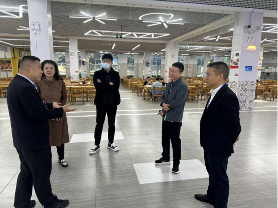 11月12日上午,资产公司总经理助理张俊率领餐饮管理部部长范淑芬、仓储与物流配送部部长张锐、餐饮管理部副部长袁琛一行,赴湖北师范大学文理学院学生食堂开展实地考察与调研工作,文理学院食堂负责人尹云峰陪同调研。